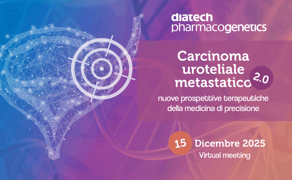 Diatech Pharmacogenetics is pleased to announce its new Continuing Medical Education project “Carcinoma Uroteliale Metastatico 2.0. Nuove prospettive terapeutiche della medicina di precisione”, co-sponsored with Johnson&Johnson Don’ t miss it on December 15 at 3.00 PM. Days Hours Minutes Download the agenda